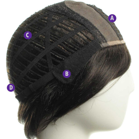 A Top and Crown: The top and crown sections of this wig are made of a closed patterned mesh material to ensure a realistic scalp effect. The edge section is fitted with a soft comfort strip that allows the wig to sit comfortably against the skin. The wig extends all the way to the top of the head, giving the impression of real hair, as if it were growing from your scalp.