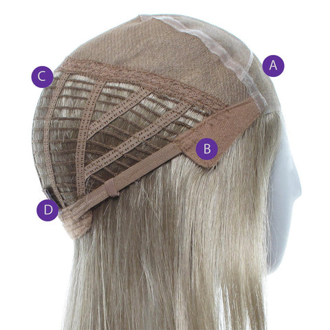 A Top and Crown: The top of this wig is completely hand-knotted so the look is as natural as possible. It is a new silk wig, which means that wherever you part the wig, it will give the impression that the hair comes from your own scalp.The full lace wig has an extra feature. It's the ultimate in natural hair extensions, creating an undetectable effect. Stunning structure!