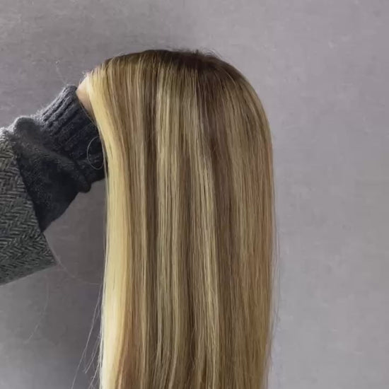 A: Once the wig is knotted, squeeze the human hair wig shampoo into a bowl of warm water and mix it with your hands to make sure the solution has dissolved. Then place the wig in the bowl and apply the shampoo to the top of the wig head and inside the wig cap, then gently rub the wig with warm water, making sure not to do so violently, as this will damage the hair.