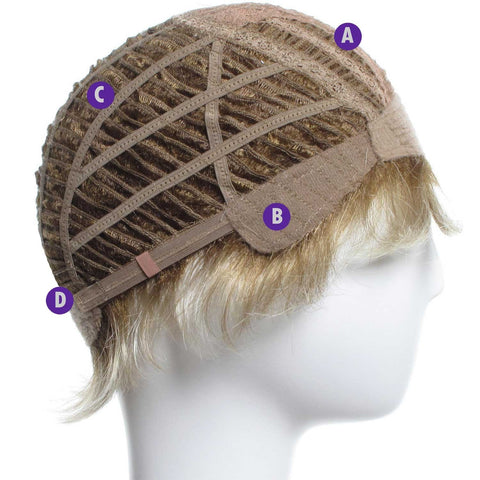D Nape:There is a beautifully constructed comfort strip at the nape. It is a closed section of soft material that fits softly around your neck. This wig is held in place by an adjustable band. There is one inch of elasticity so the wig can be tightened or loosened to fit the size of your head.